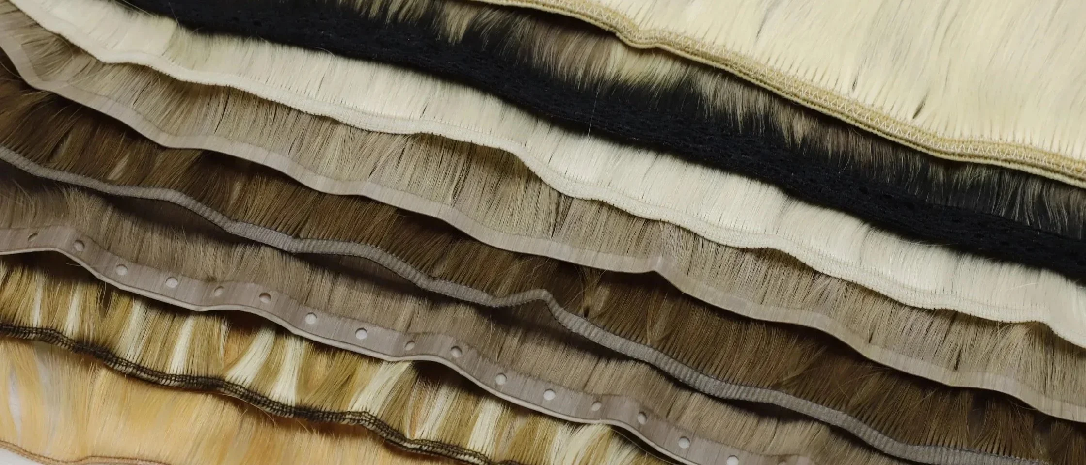 hybrid that combines the best of machine and hand-tied wefts using a polyurethane strip to create an ultra-slim, flexible seam with no return hair.